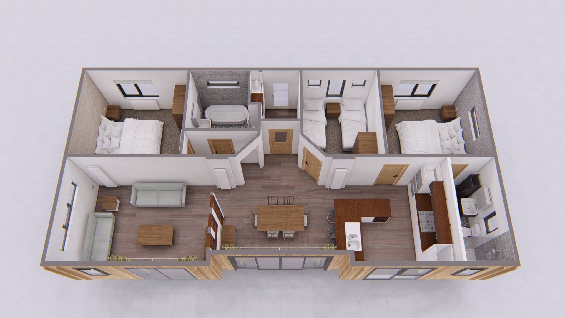 • 2 or 3 double bedrooms and 2 bathrooms (45' x 22' upwards)