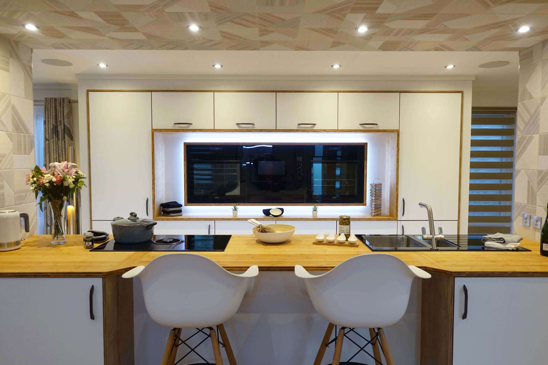 • Home entertainment system with sound bar, bass speaker and rear ceiling speakers, linked to a multiroom, app-controlled sound system