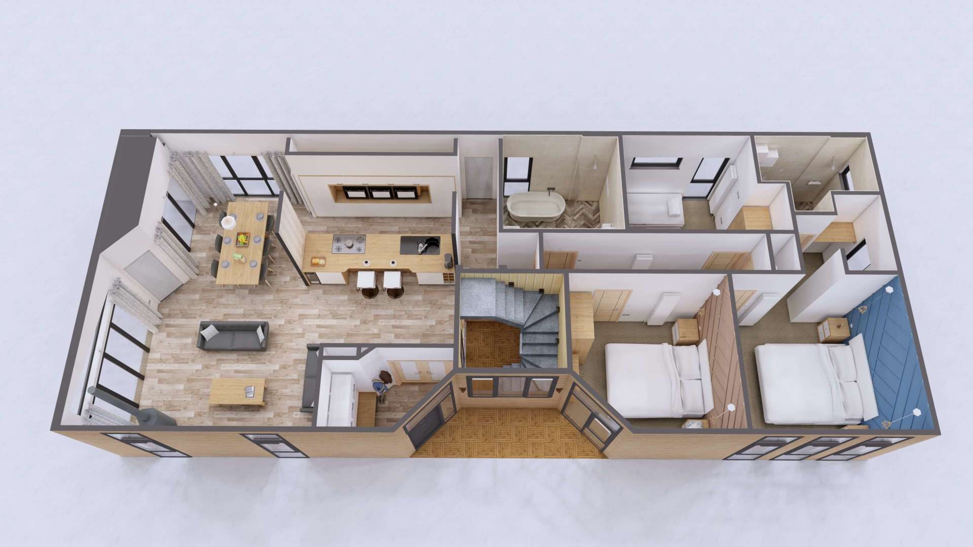 The Aspire Nordica is the very first of its kind. Taking lodge living skyward, the Nordica features a unique roof terrace with teak deck boards, glass balustrades, integrated planter boxes and low-level lighting. Unlike any other rooftop lodge, this terrace is accessed by a conventional staircase from within the home.