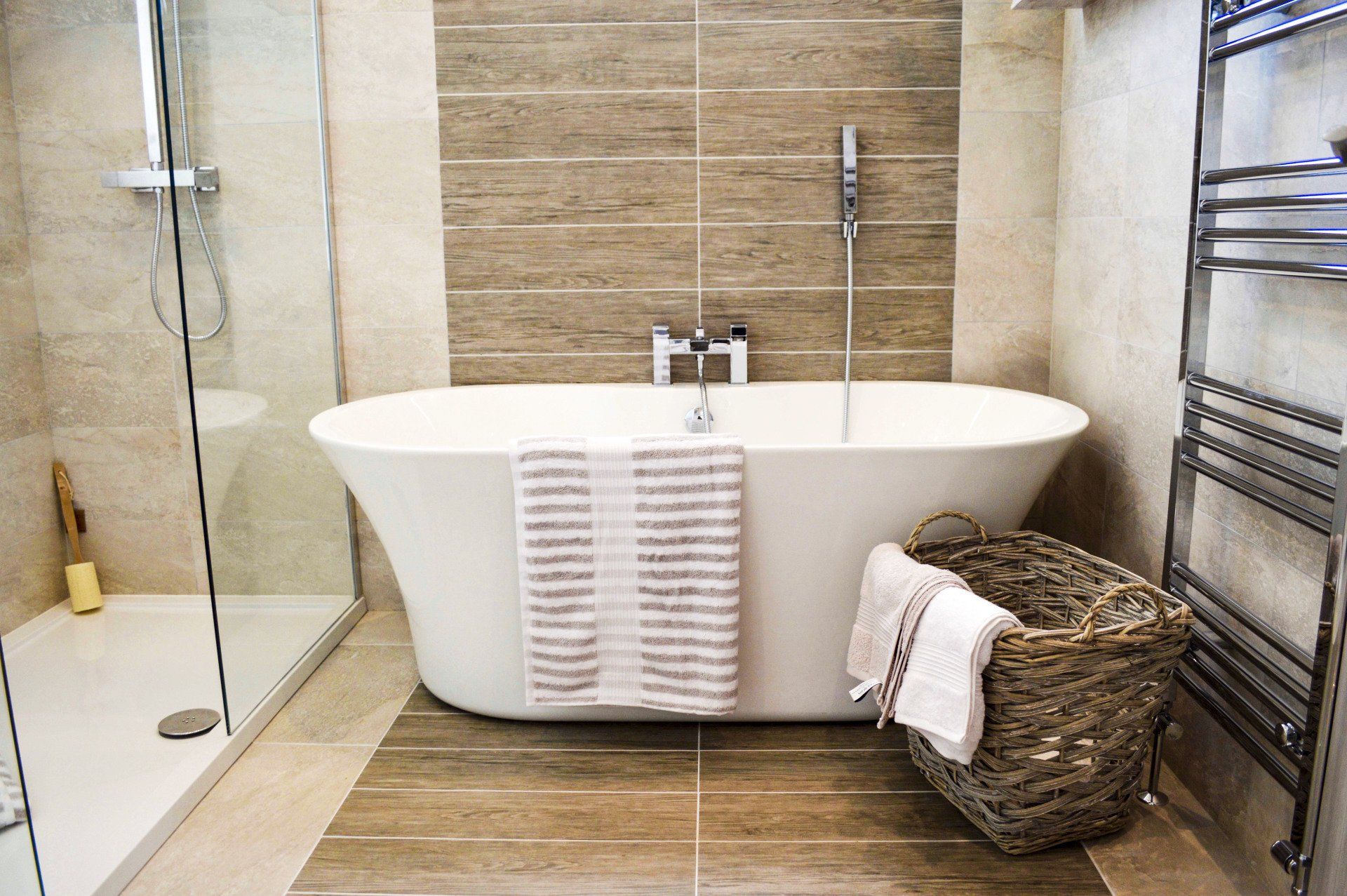 • Large walk-in shower with multifunction rainfall and handheld shower heads