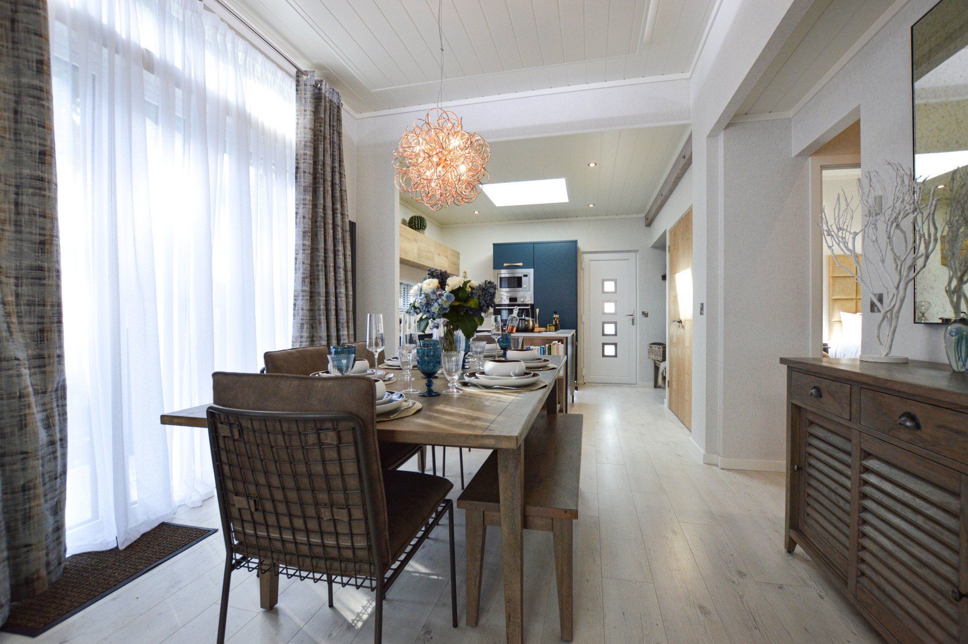 The exterior of this home is like nothing seen before in a holiday lodge. The clean lines, multifaceted flat roofs, gorgeous timber features and bifolding doors will instantly transport you to the forests and coastlines of California. The grand, multilevelled ceilings create amazingly airy living areas and vistas can be enjoyed from every angle. Large roof windows over the lounge and kitchen allow even more light to pour into the open spaces.