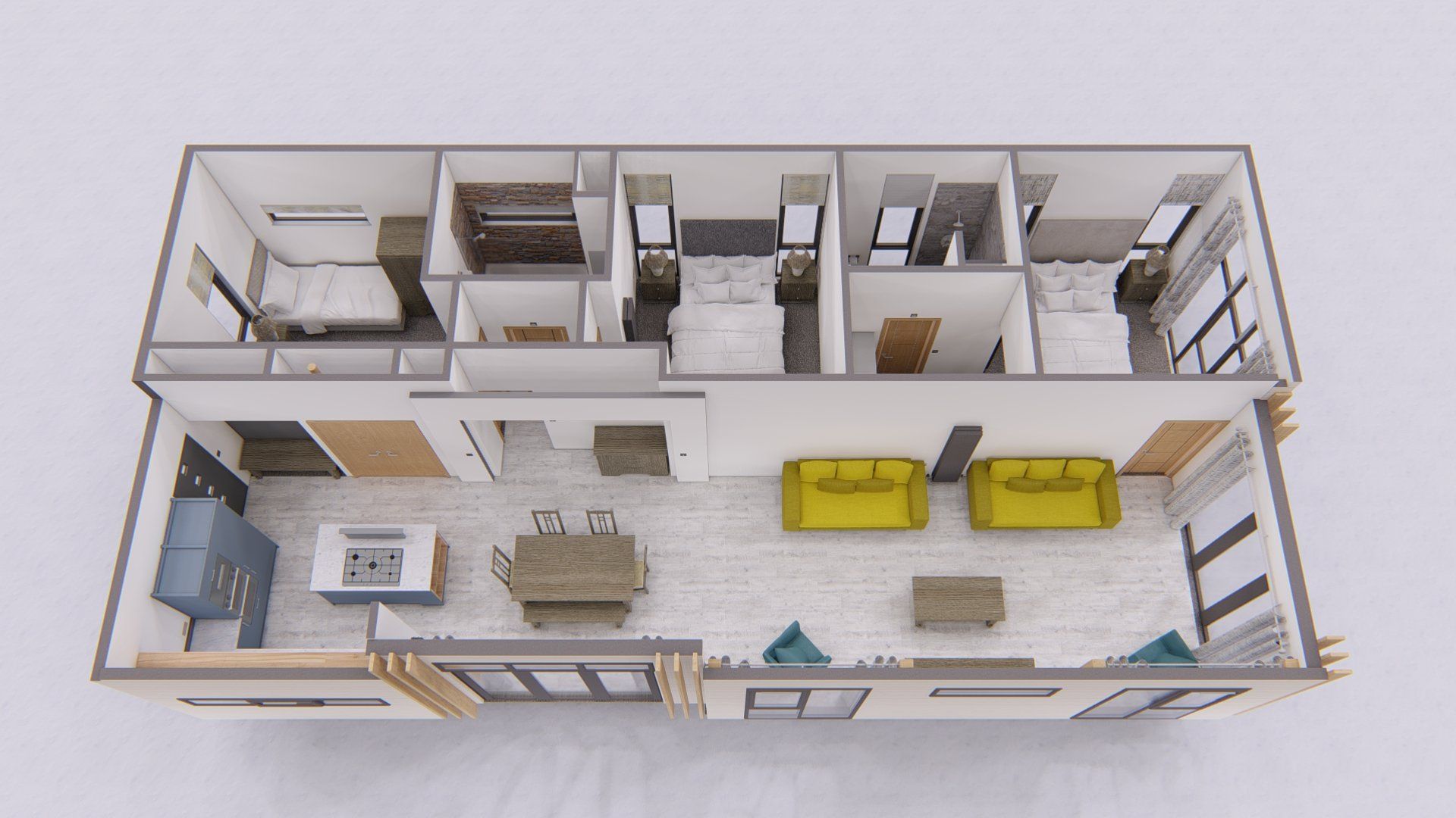 • Grey ash furniture throughout